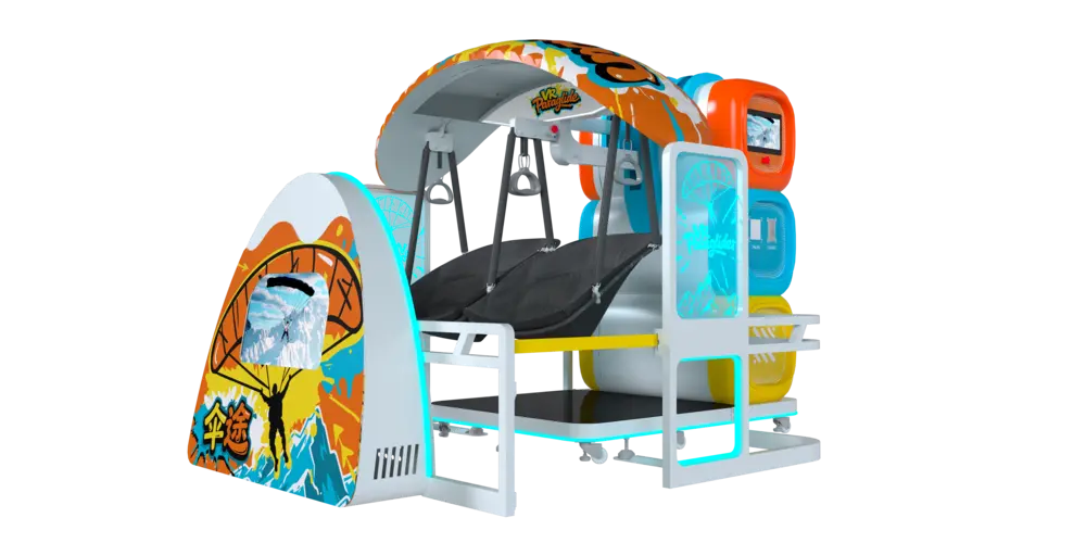Preparati a un’avventura di livello superiore con VR Paraglider, il simulatore di paracadutismo in realtà virtuale progettato per ricreare con realismo impressionante l’emozione della caduta libera e del volo in parapendio. Grazie alle sue rapide salite e discese fino a 800 mm, il simulatore regala ai giocatori una sensazione autentica di vuoto e accelerazione. Il sistema force feedback ad alta precisione riproduce vibrazione, impatto e atterraggio con un livello di dettaglio sorprendente, amplificando l’immersione. I ventilatori integrati modulano la velocità del vento in tempo reale, creando un flusso d’aria dinamico che avvolge l’utente durante il volo. A completare l’esperienza, un audio di qualità cinematografica arricchisce la scena con suoni avvolgenti e realistici.